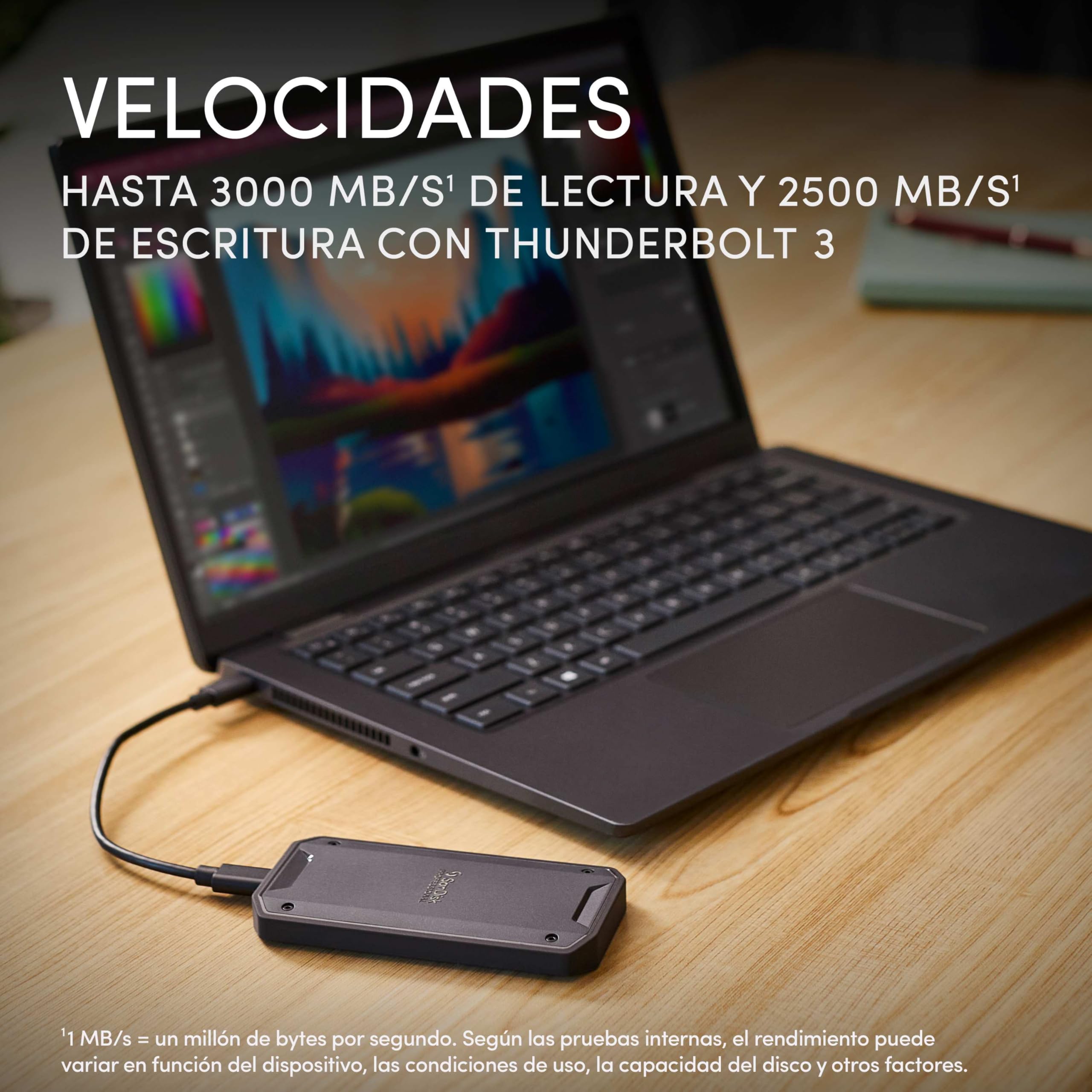 Hasta 3000 MB/s | Thunderbolt 3 (40 Gbps) y USB-C (10 Gbps) | Resistencia IP68 polvo y agua | Formateado en exFAT | Ultra-resistente y portátil